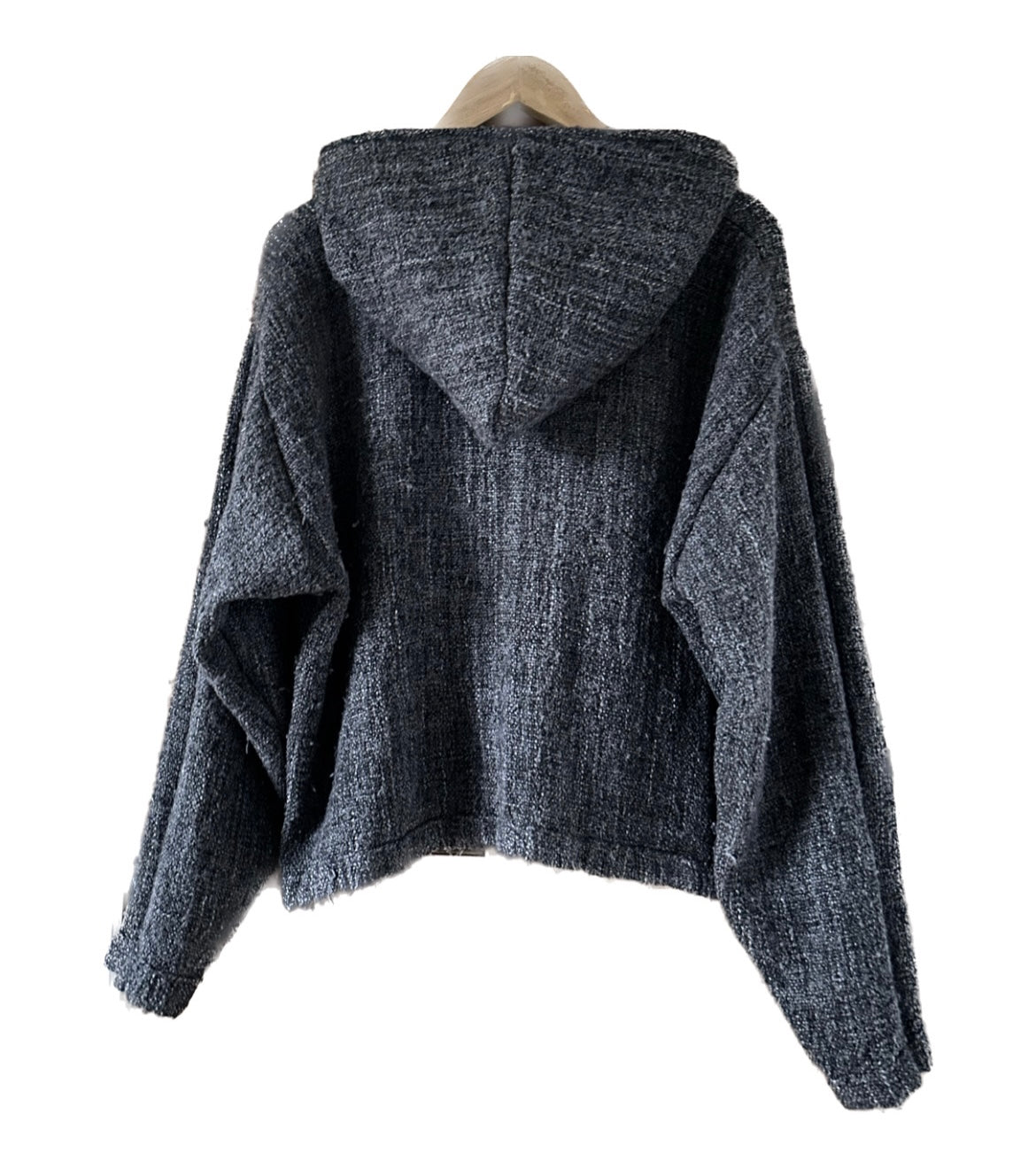 The Gray Blanket Upcycled Hoodie has been sustainably made from a gray secondhand blanket. The hood is double lined for extra comfort.